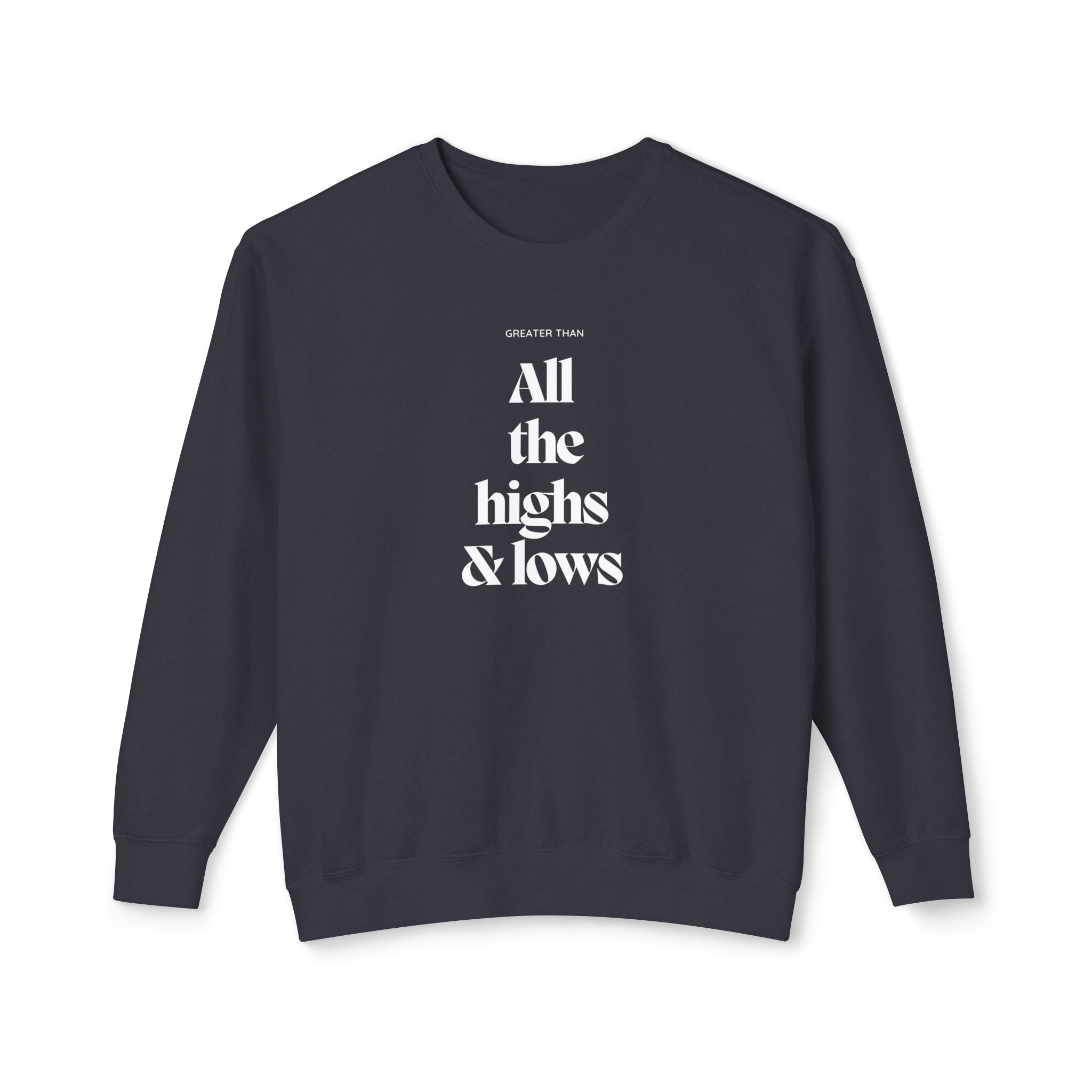 Unisex Crewneck Sweatshirt – “Greater, than all the highs and lows”