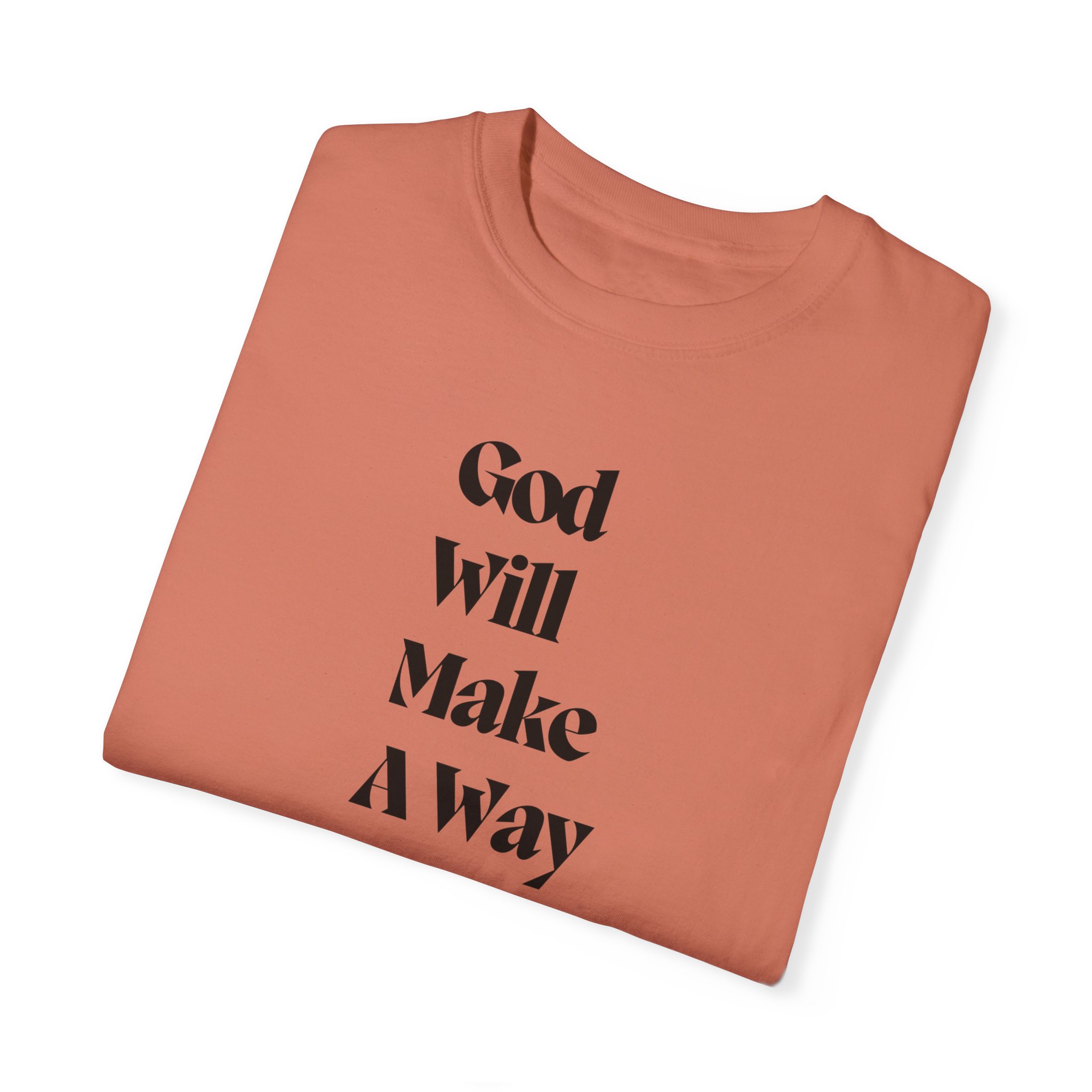 Let faith and hope arise! God can make a way when there is no way. This encouraging message inspires the soul to believe when things look impossible, for with God, all things are possible according to His perfect will. This unisex T-shirt features a classic crew neckline and relaxed fit, perfect for daily wear. It combines comfort and spiritual meaning, making it ideal for anyone seeking to express their faith through their everyday style.